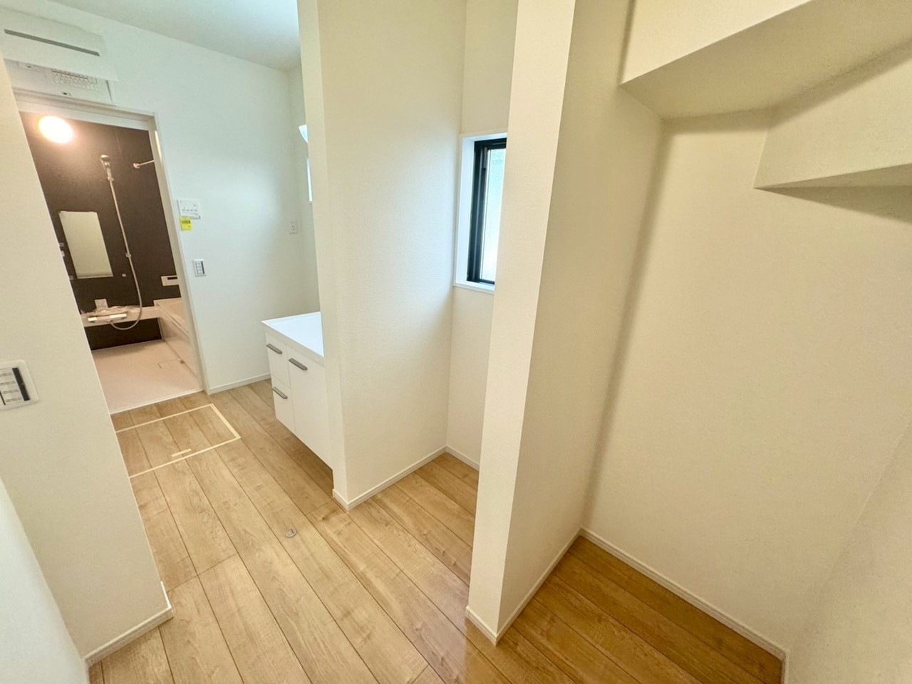 洗面・浴室がひと続きになった使いやすい設計。朝の支度や帰宅後の動線もスムーズです