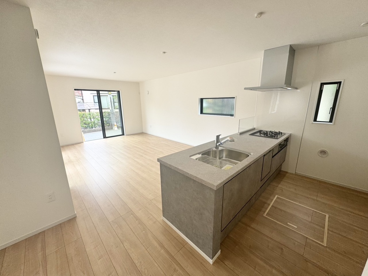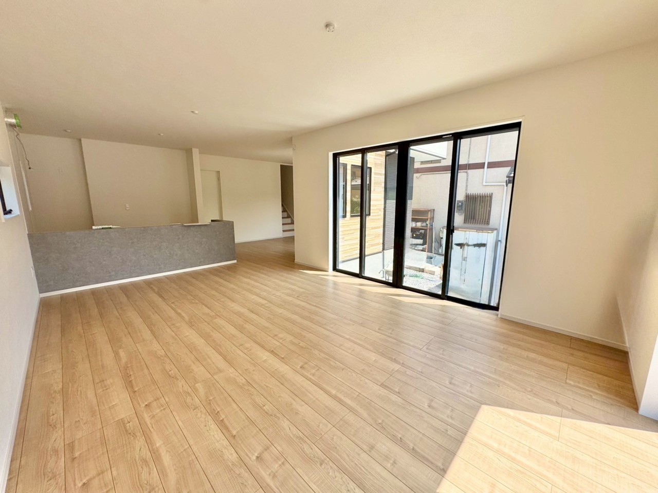 窓から自然光が差し込む、明るく開放的なLDK。キッチンとのつながりも良く、毎日の暮らしが快適に