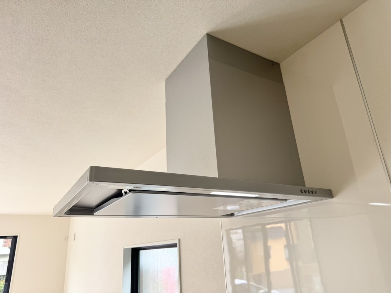 キッチンをスタイリッシュに彩るT型レンジフード。効率的な換気と美しいデザインが調理空間をより快適に演出します。