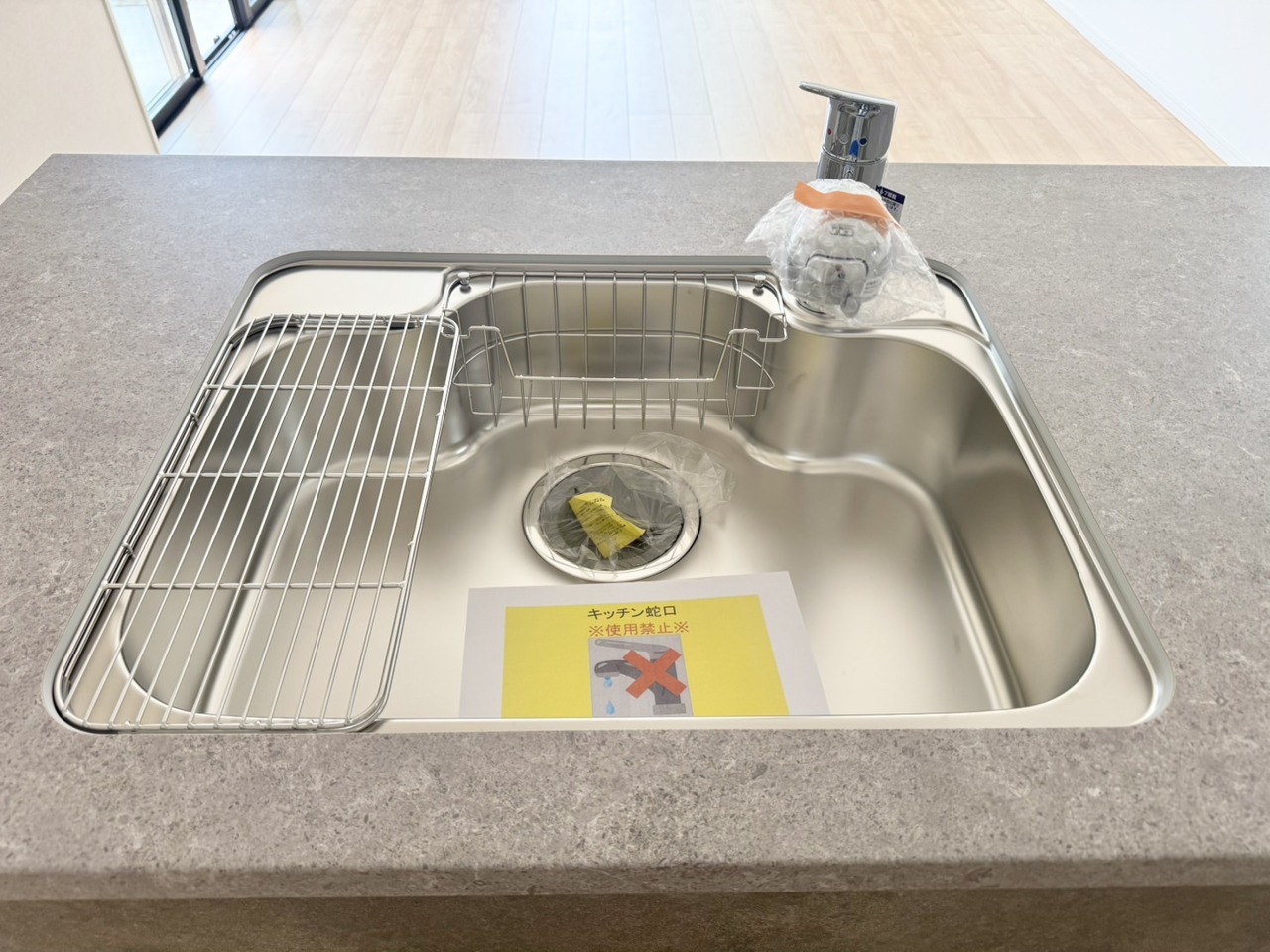 使い勝手が良い大型シンク。料理が楽しくなる広々とした作業スペースで、家事もストレスフリーです。