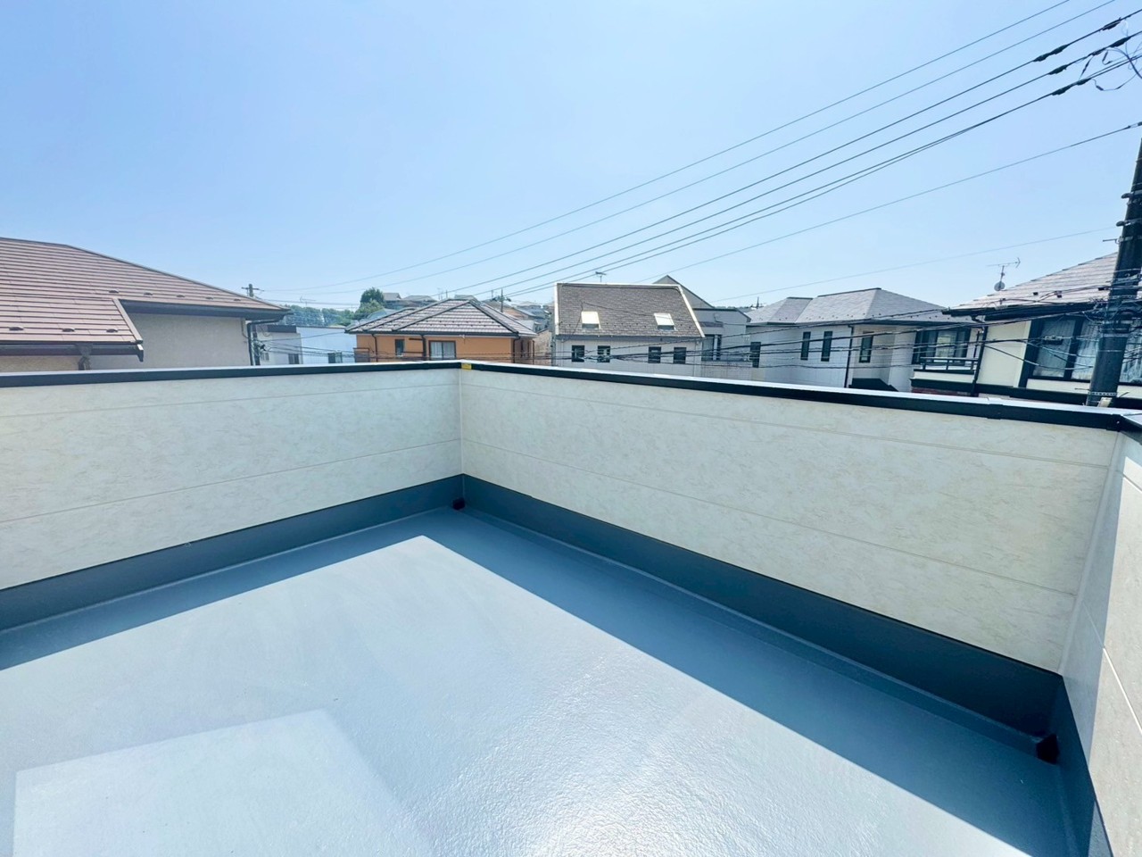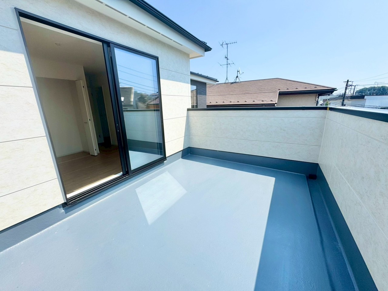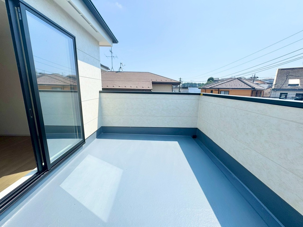 住宅街を望む開放的なバルコニー。晴れた日は風を感じながら、家族で過ごすひとときにもぴったり