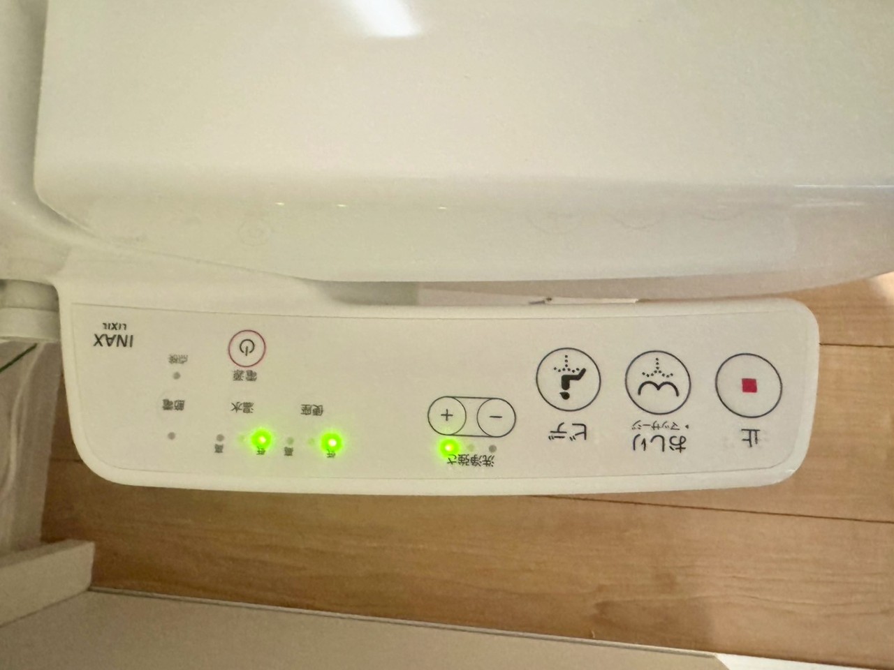 操作しやすいパネル付きの温水洗浄便座。清潔で快適なトイレ空間を実現します
