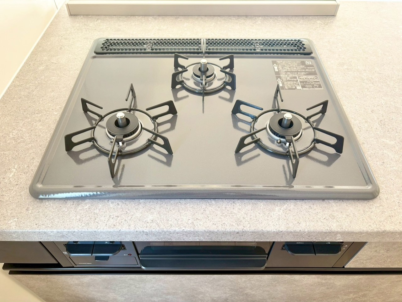 3口ガスコンロで調理の幅が広がり、同時調理もスムーズに。高火力と広い作業スペースで、美味しい料理を家族や友人と楽しめます。