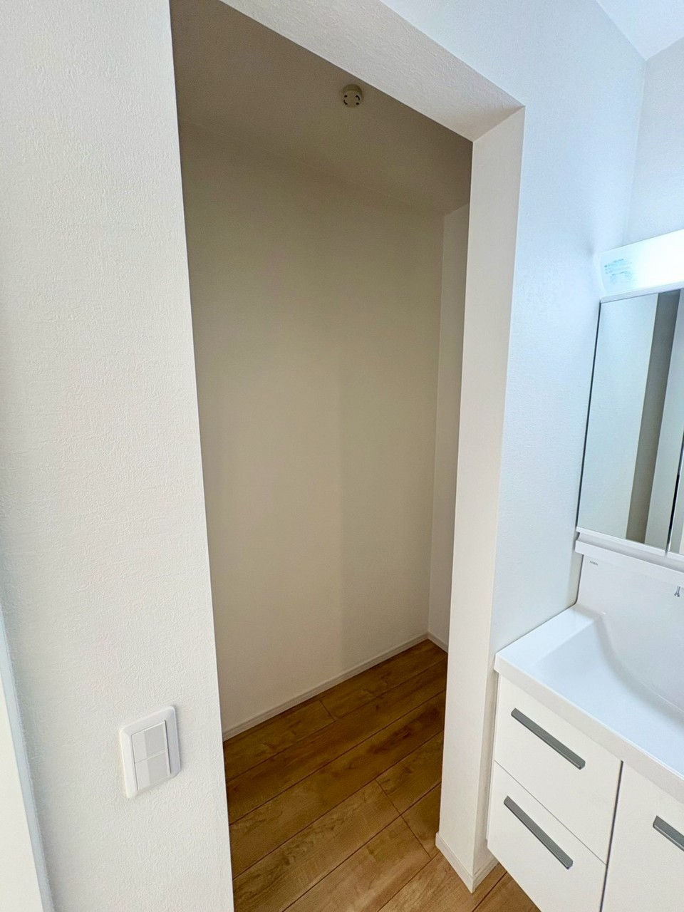 整ったリネンスペースは、清潔感ある収納でタオルやリネン類をスッキリ整理。使いやすいデザインで毎日の家事を快適にサポートします。
