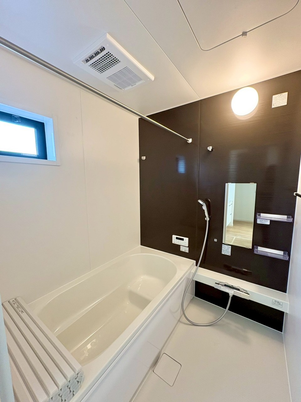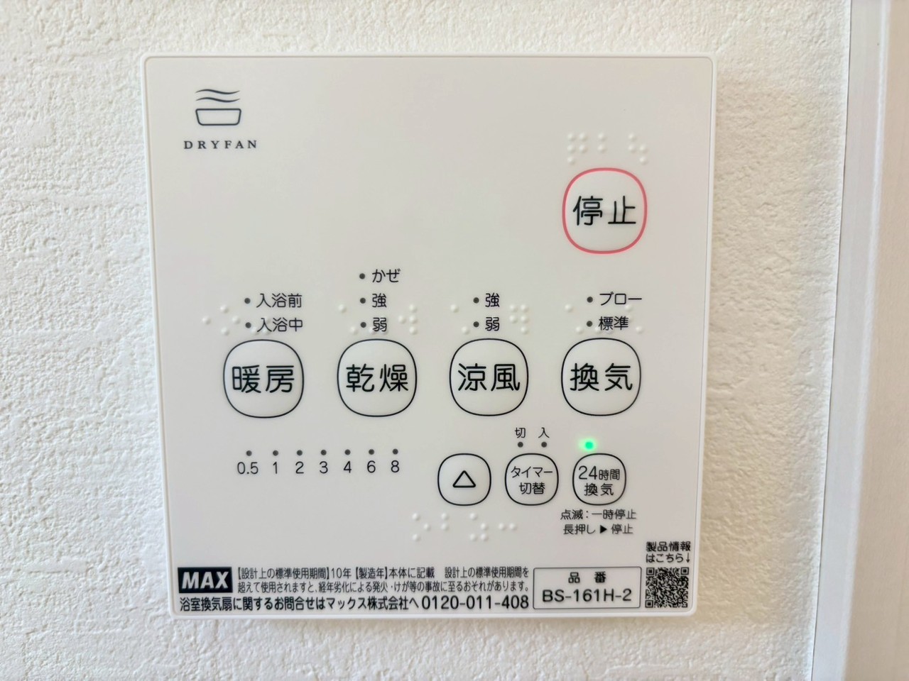 浴室乾燥暖房機は湿気を抑えてカビ対策に効果的。洗濯物の乾燥にも使えるので、雨の日や花粉の季節も安心です。冬場は浴室を暖め、快適なバスタイムをサポートします。