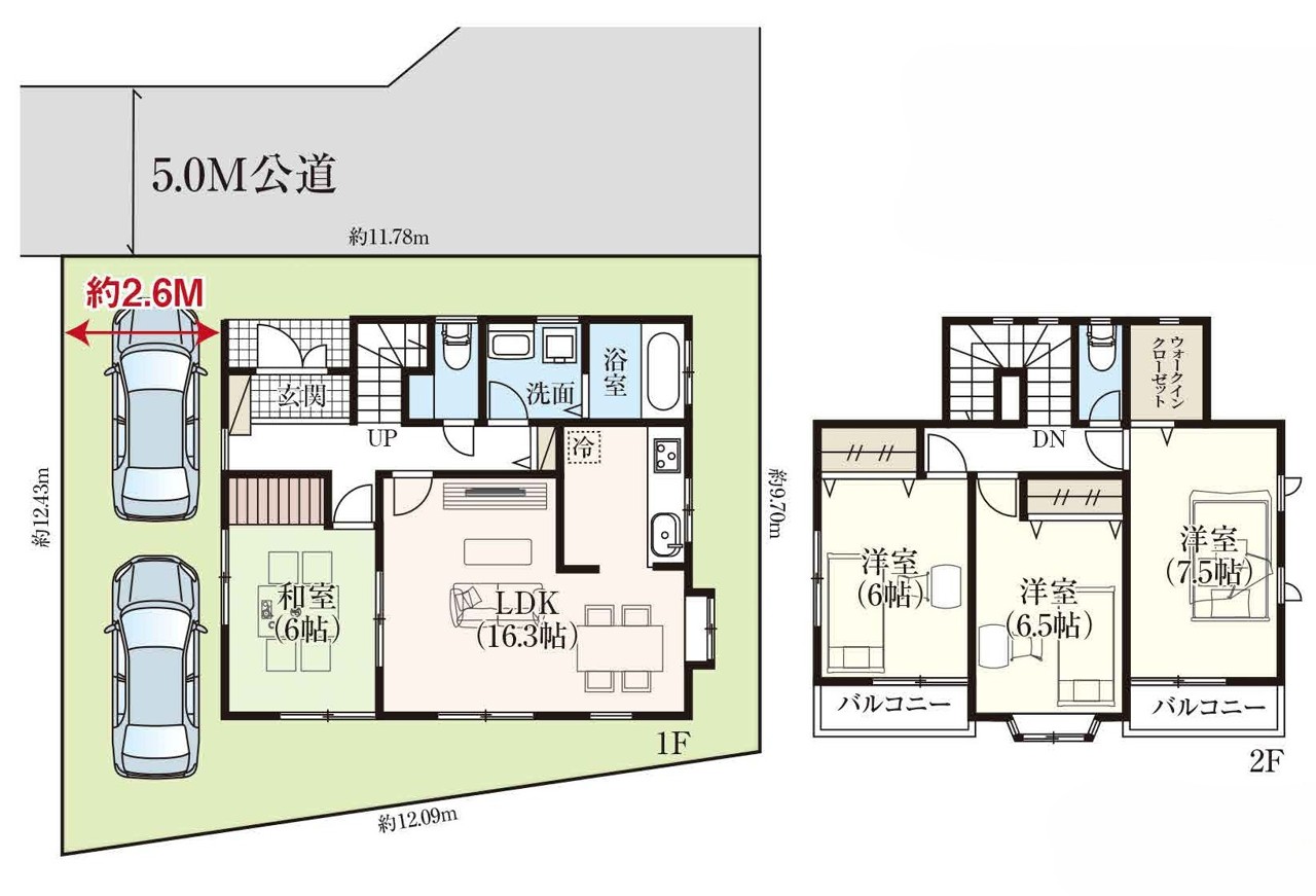 - ※完成予想図はいずれも外構、植栽、外観等実際のものとは多少異なることがあります。