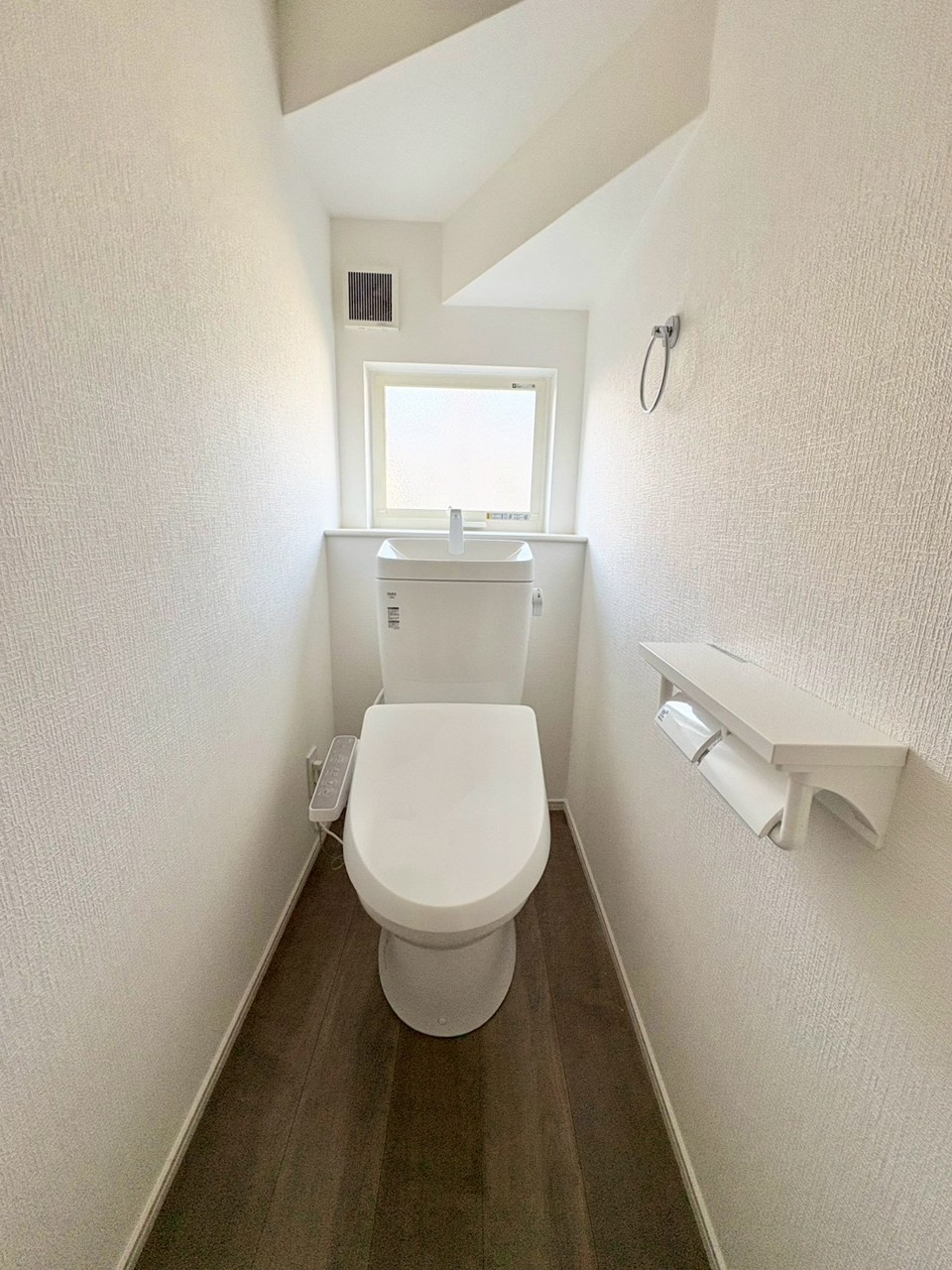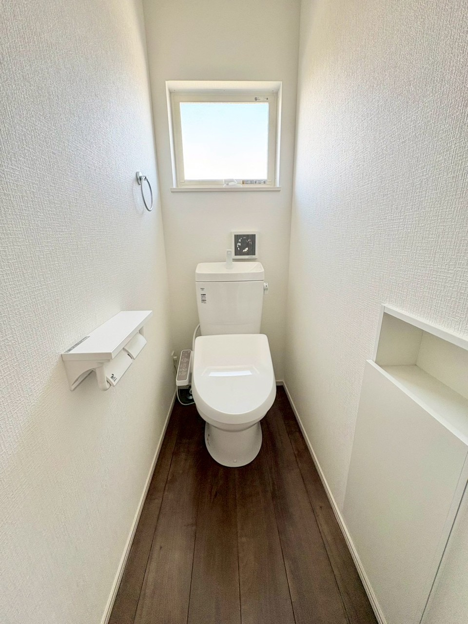 明るく開放的な空間に、収納も充実したトイレ。窓付きで換気しやすく、いつでも心地よく使えます。