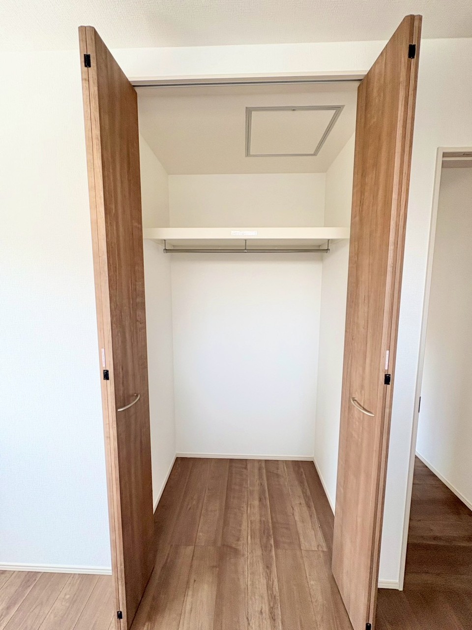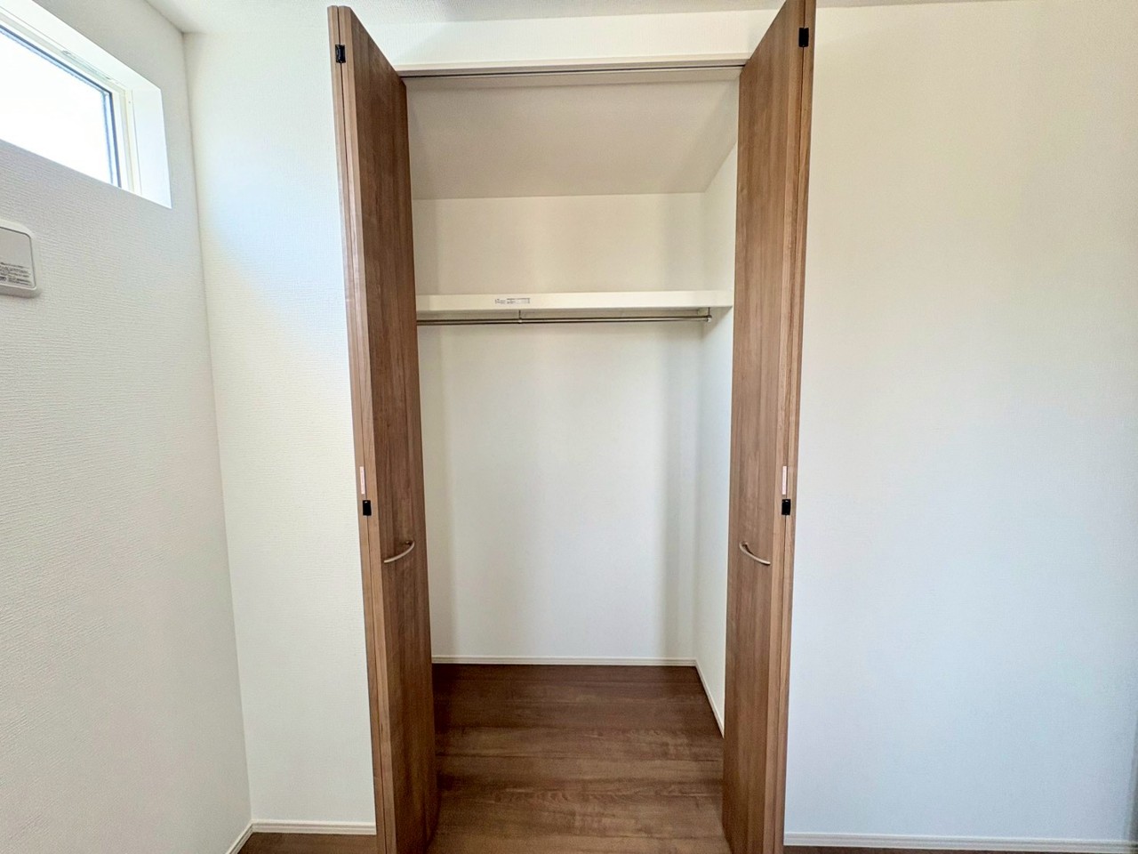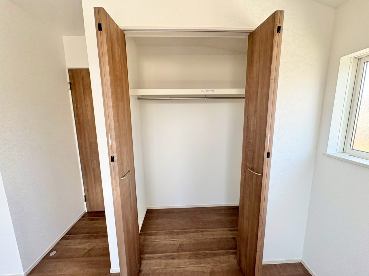 棚付きクローゼットで収納力も十分。洋服や小物をすっきり整理でき、広々とした空間で快適に暮らせます。