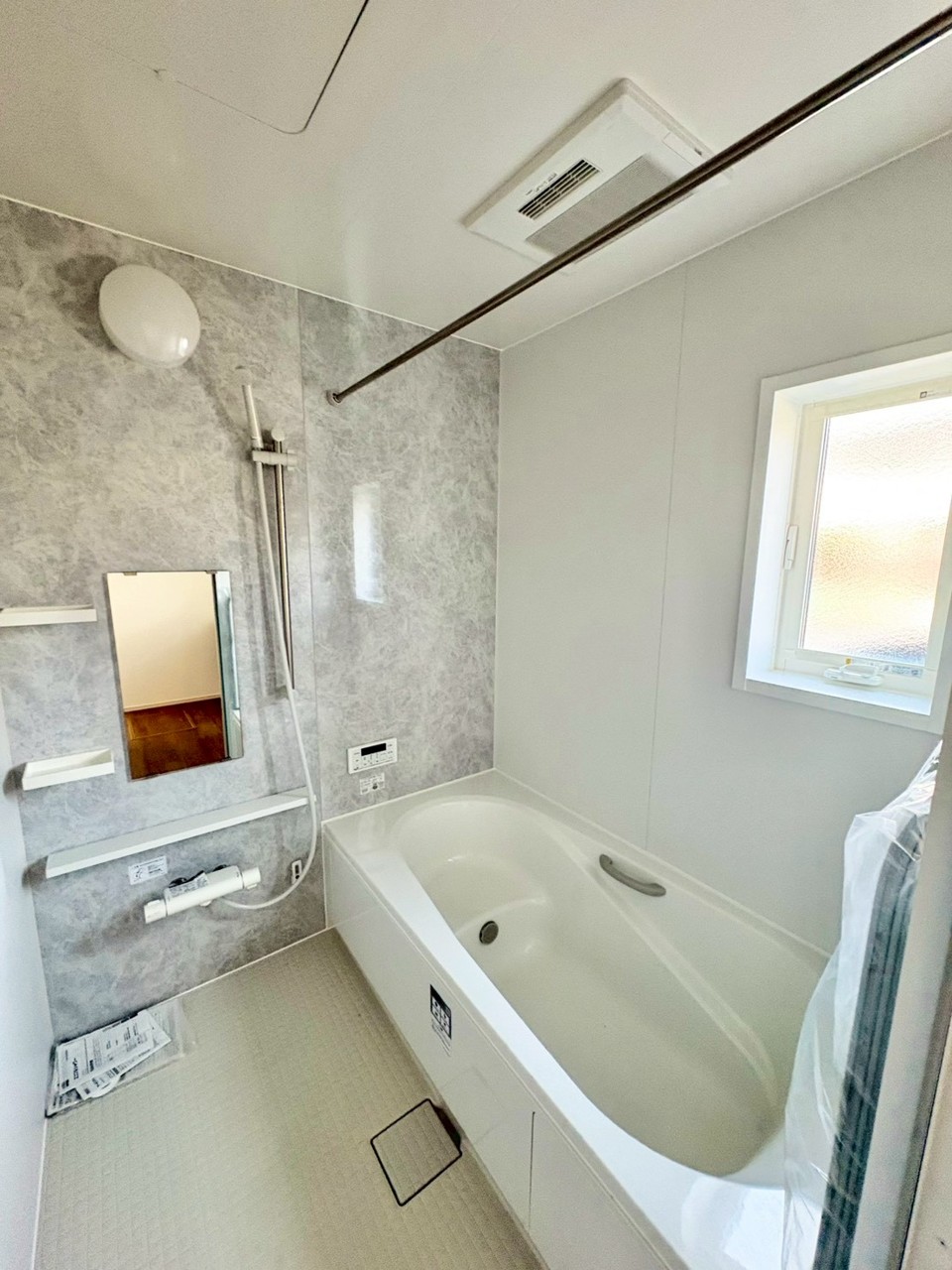 スタイリッシュな浴室。洗練されたデザインが魅力で、上質な空間がリラックスできるバスタイムを演出します。