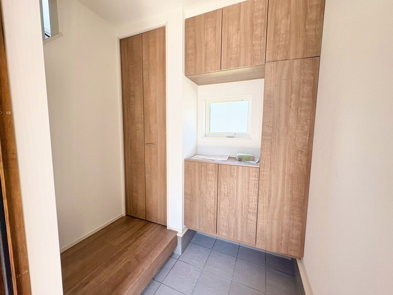 広々とした玄関には、大容量のシューズ収納と飾り棚を備えています。使いやすさと美しさが調和した、心地よい空間です。