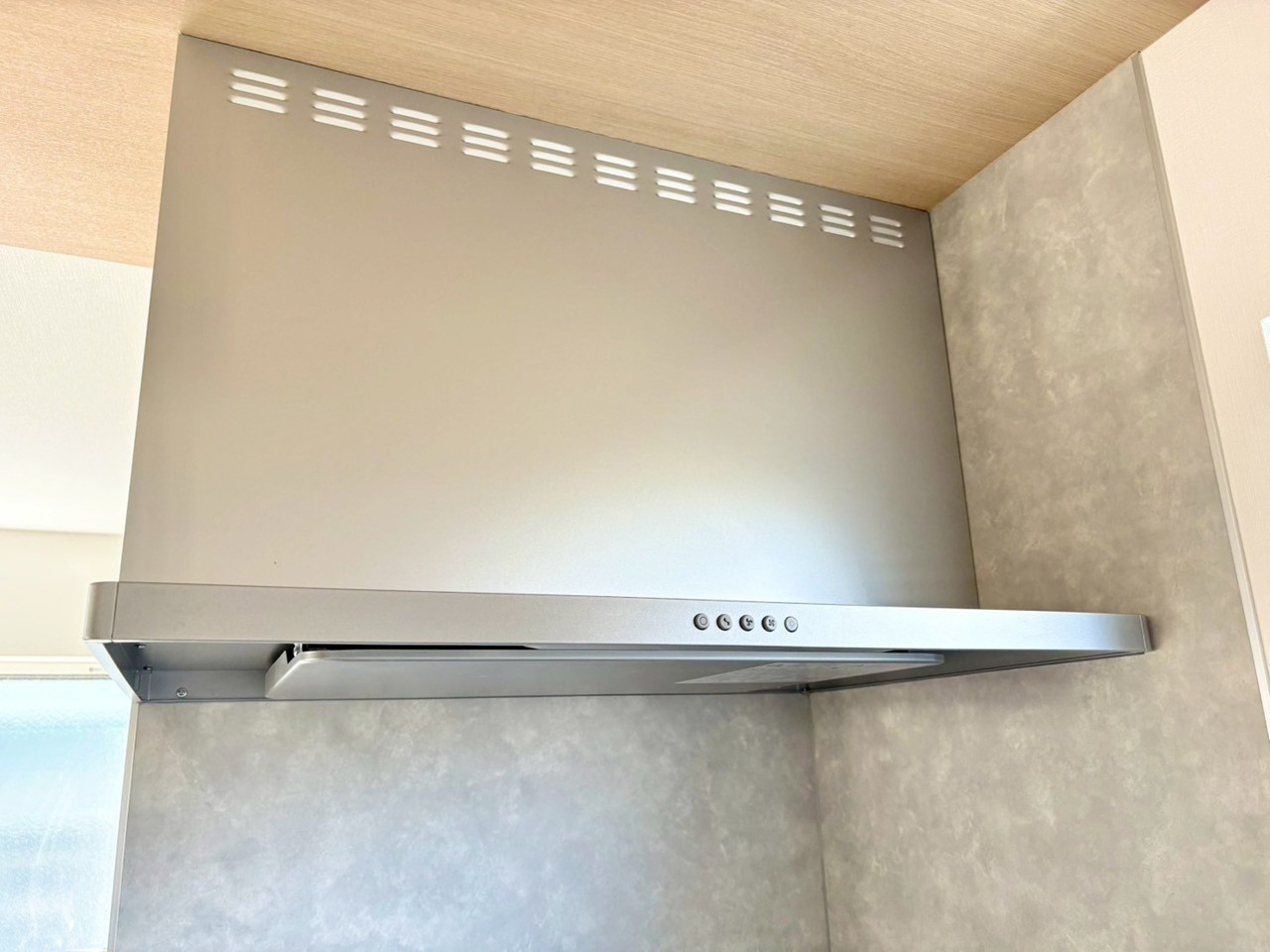 キッチンをスタイリッシュに見せるT型レンジフード。効率よく換気でき、見た目も美しく快適な調理空間をつくります。