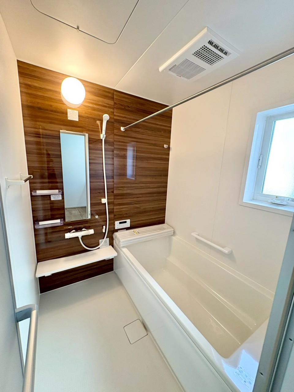 スタイリッシュな浴室。洗練されたデザインが魅力で、上質な空間がリラックスできるバスタイムを演出します。