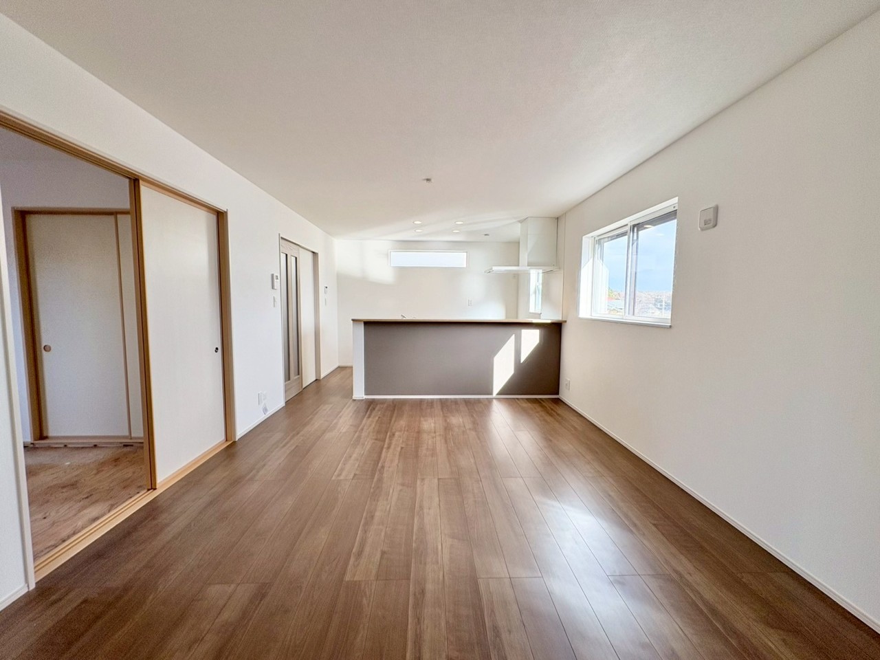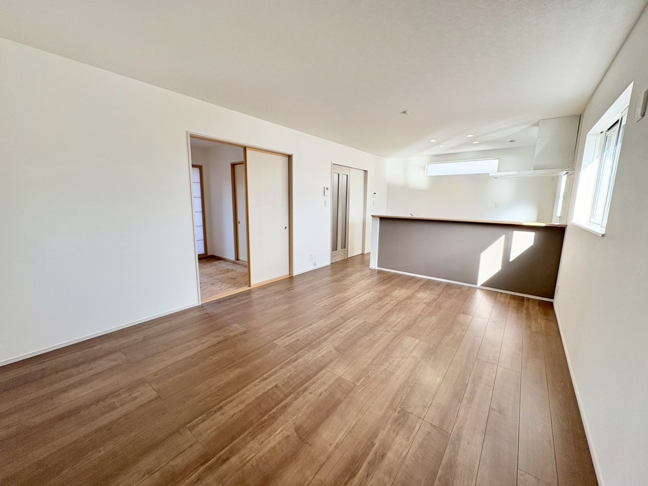 明るい色味のフローリングが広がるLDKは、2面採光で開放感たっぷり。和室の扉を開ければさらにゆとりが生まれ、心からくつろげる空間が広がります。