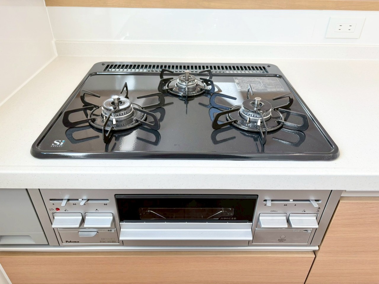 3口ガスコンロで調理の幅が広がり、同時調理もスムーズに。高火力と広い作業スペースで、美味しい料理を家族や友人と楽しめます。
