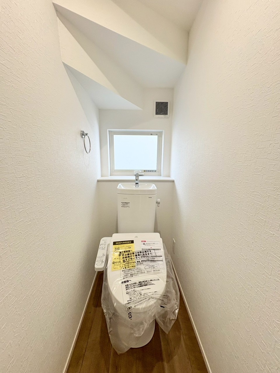 明るく開放的な空間に、収納も充実したトイレ。窓付きで換気しやすく、いつでも心地よく使えます。