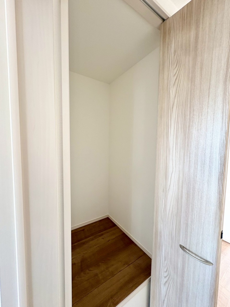 棚付きクローゼットで収納力も十分。洋服や小物をすっきり整理でき、広々とした空間で快適に暮らせます。