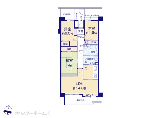 | 設備 | 公営水道、本下水、都市ガス バルコニー、両面バルコニー、照明器具、フローリング、火災警報器(報知機)、収納 |